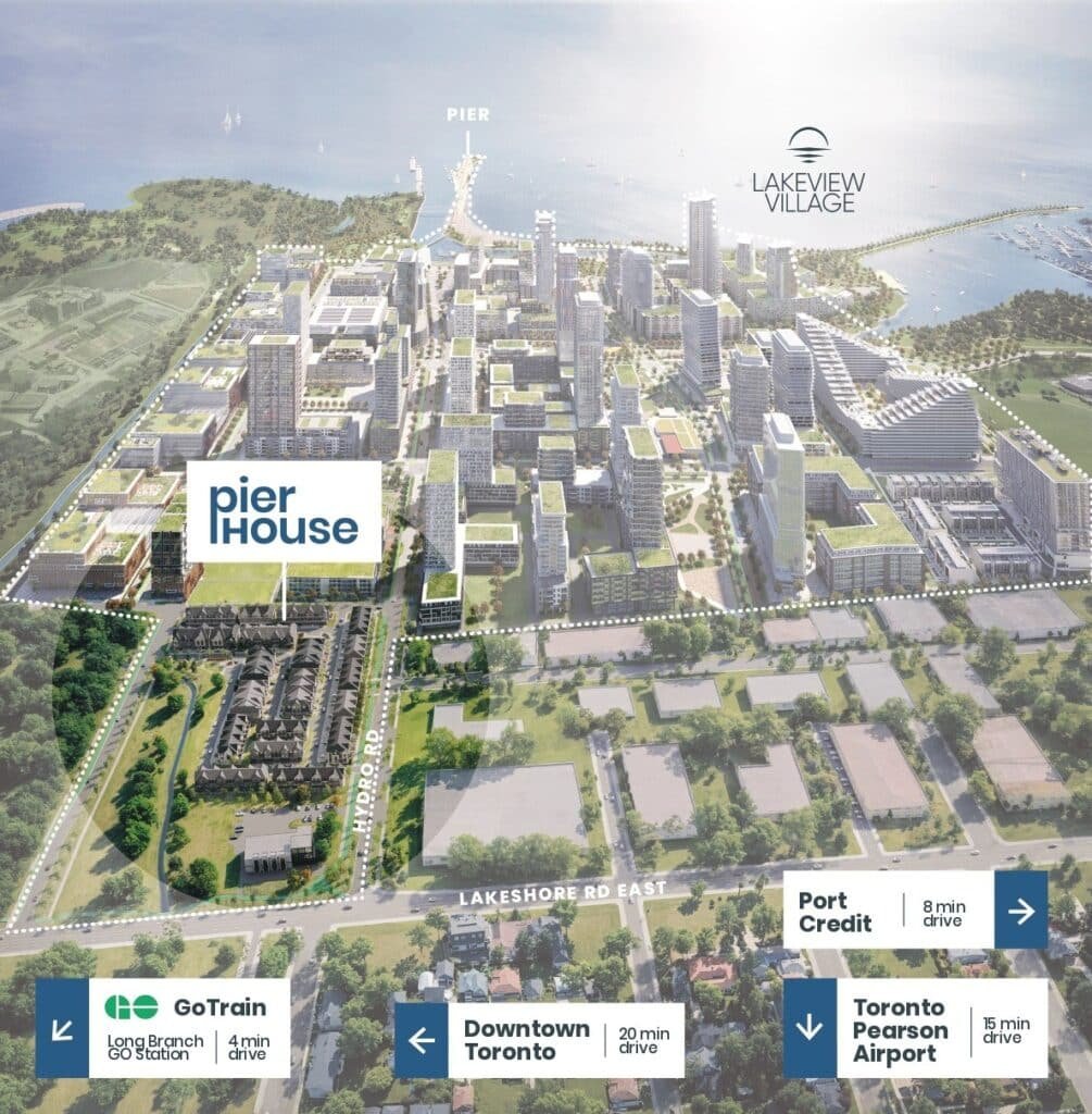 Leafy waterfront streets, lakeside parks, weekend trails, everyday essentials and fast connections to Long Branch, Port Credit and Downtown Toronto — all moments from Pier House Towns.